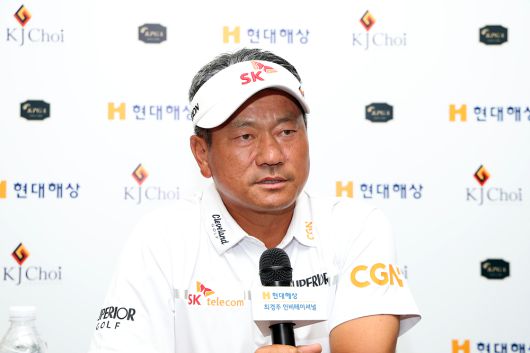 최경주가 24일 경기도 여주시 페럼 클럽에서 한국프로골프(KPGA) 투어 현대해상 최경주 인비테이셔널 기자회견을 갖고 있다. [KPGA 제공] |