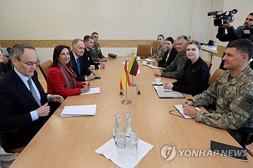 24일 리투아니아 샤울랴이 공군기지에서 열린 스페인·리투아니아 국방장관 회의 |