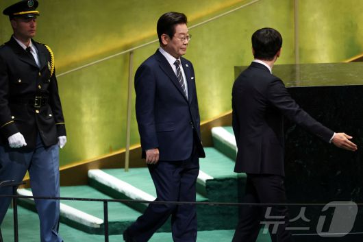 이재명 대통령이 23일(현지시간) 미국 뉴욕 유엔 본부에서 열린 제80차 유엔 총회에서 기조연설을 위해 이동하고 있다. ⓒ 로이터=뉴스1 ⓒ News1 황기선 기자 |