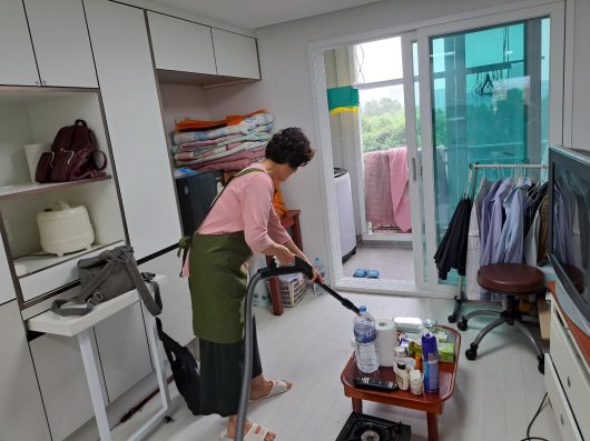 인천도시공사(iH)는 연수구 노인인력개발센터 노인 일자리 사업과 연계한 ‘가사 돌봄’과 ‘주거복지 돌봄’ 서비스를 통해 홀몸노인을 지원하고 있다. 여성 활동지원사가 거동이 불편한 임대주택 거주자를 찾아가 가사 돌봄 서비스를 제공하고 있다. iH 제공 |