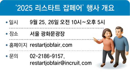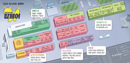 올해 13회째를 맞은 동아일보·채널A 주최 ‘2025 리스타트 잡페어’는 광화문광장에서 72개 기업·기관이 참가해 94개 부스를 차린다. 이벤트 부스까지 포함하면 총 110개의 부스에 다양한 행사가 마련됐다. 행사장은 △리스타트관 △창업관 △영올드관 △공공플러스관 △일자리안전특별관 등 5개 관으로 운영된다.