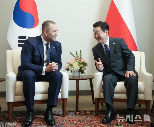 [뉴욕=뉴시스]최동준 조재완 기자 = 유엔총회 참석차 방미 중인 이재명 대통령이 24일(현지시간) 카를 나브로츠키 폴란드 대통령과 첫 양자회담을 가졌다.