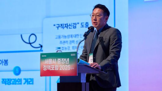 '서울시 중장년 정책포럼 2025'에서 발표하는 정흥준 서울과기대 교수 (사진=서울시50플러스재단 제공, 연합뉴스) |