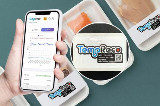 두께 0.7mm의 초박형 스티커 형태로 제작된 템프레코는 배송과 보관 전 과정의 온도를 자동으로 기록하고, 스마트폰 NFC 태깅만으로 온도 데이터를 바로 확인할 수 있는 것이 특징이다.