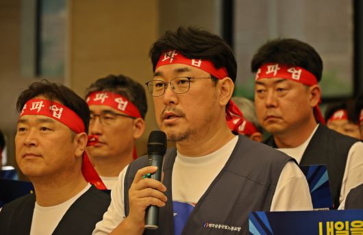 김형선 금융노조 위원장은 지난 24일 중구 은행회관에서 개최한 ‘총파업 돌입 기자회견’에서 “노조가 원만한 타결을 위해 인상률을 3.9%로 수정 제안했음에도 사측은 여전히 실질임금 삭감 수준인 2.4%를 고수하고 있다”며 “금융산업은 역대급 당기순이익을 기록하고 있는데 노동자에게 돌아온 몫은 초라하다”고 말했다. 이어 “2002년 금융산업이 주 5일제를 가장 먼저 도입한 것처럼 주 4.5일제 또한 선제적으로 도입해 저출생과 소비 침체 문제를 해결해야 한다”고 밝혔다.