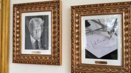 전임 대통령인 조 바이든 자리에는 얼굴 대신 자동서명기, '오토펜' 사진을 걸었는데 이유가 뭘까요.