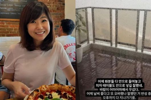 강수정은 24일 인스타그램에 “어제 화분과 의자, 테이블을 모두 안으로 들여놓길 잘했다”며 “바람이 너무 거세 무섭다. 오후까지만 버티면 지나가길 바란다”고 긴장된 마음을 전했다.