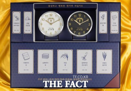 대통령실은 이번 추석을 맞아 △대통령 시계 △8도 수산물 △우리 쌀 등을 담은 선물세트를 준비했다.