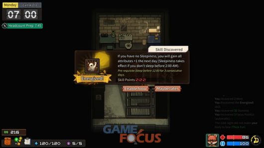 플레이어는 교도소에 수감되었으므로 기본적으로는 교도소의 일과를 따라간다. 7시 기상, 12시 점심식사, 오후에는 야외활동만 진행하고 저녁식사 후 자유시간, 22시에 소등.