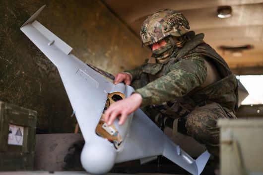 러시아군 드론 분대 병사가 22일(현지시간) 헤르손 지역에서 무인기(드론)을 조작하고 있다. 타스연합뉴스 |