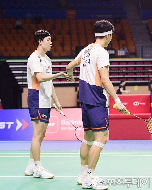 [수원(경기)=스포츠투데이 권광일 기자] '수원 빅터 코리아오픈 2025' 여자 단식 경기가 24일 수원실내체육관에서 열렸다. 대한민국 김원호, 서승재가 야마시타 교헤이-미도리카와 히로키(일본)와의 복식 16강전 경기를 치르고 있다. 2025.09.25. [스포츠투데이 권광일 기자 sports@stoo.com]