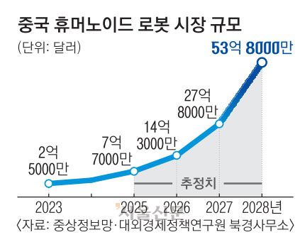 실제로 대외경제정책연구원 베이징사무소가 지난 6월 발표한 ‘중국 휴머노이드 로봇 발전 동향 및 평가’ 보고서에 따르면 2023년 2억 5000만 달러(약 3503억원)였던 중국의 휴머노이드 시장 규모는 현 추세로 성장할 경우 2028년 53억 8000만 달러(7조 5300억원)에 이를 것으로 추산됐다. 최근 3년간 전 세계 휴머노이드 중 61%를 생산할 정도로 성장한 중국은 이미 제조업이나 화물 운송뿐 아니라 수술·진단 등 의료 분야, 호텔·레스토랑·쇼핑몰 등 서비스업, 순찰·재난·구조 등 특수 분야까지 휴머노이드 활용 폭이 확대된 것으로 조사됐다.