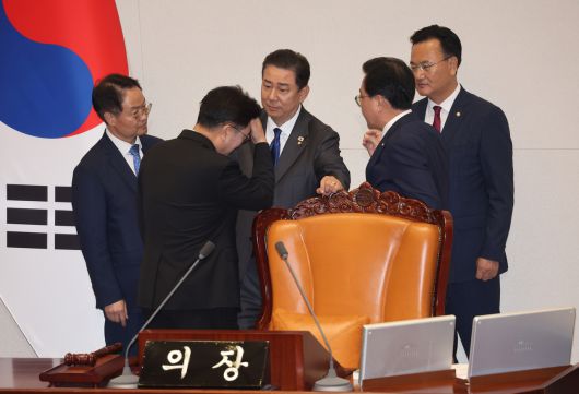 이에 대해 우 의장은 “제가 아무리 봐도 이것을 무효로 처리할 방법은 없어 보여서 유효로 처리하겠다”라고 선언하자 국민의힘은 또다시 반발했다.