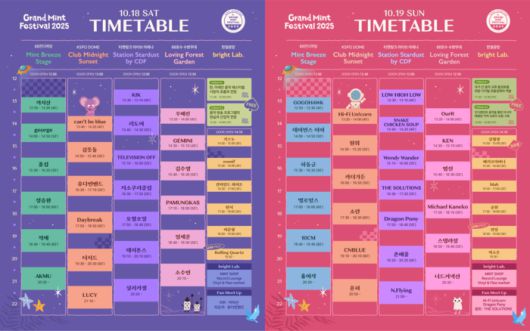[스포츠서울 | 이승록 기자] 매년 음악 팬들의 큰 사랑을 받아온 가을 대표 음악 축제 ‘그랜드 민트 페스티벌 2025(Grand Mint Festival 2025, 이하 GMF)’가 최종 타임테이블과 각 일자별, 스테이지별 헤드라이너를 공개했다.