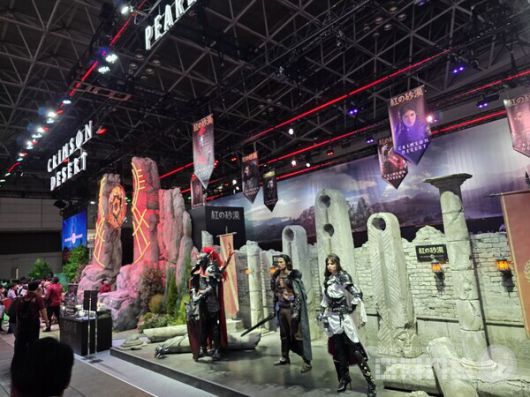 특히 주목할 만한 점은 부스 디자인이다. 고대 유적을 연상시키는 문양이 새겨진 거대한 돌 구조물을 중앙에 배치하고, 그 사이로 시연 관람객을 입장하는 동선을 만들어 방문객들이 게임의 세계관을 미리 체험할 수 있도록 했다. 붉은색과 검은색을 기조로 한 중세 유럽풍 의상을 입은 여성 코스플레이어 3명도 자연스러운 연출로 지나가는 관람객들의 시선을 사로잡고 있다.
