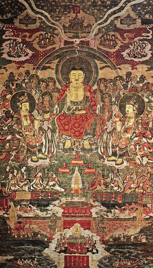 특히 묘만지본은 미륵정토로 왕생하는 이들을 태운 ‘반야용선(般若龍船)’이 그려져 있는데, 현존하는 반야용선 도상 중 가장 이른 시기의 것으로 추정된다.