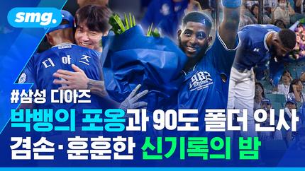 프로야구 삼성의 '거포' 르윈 디아즈가 KBO리그 한 시즌 최다 타점과 한 시즌 외인 최다 홈런 신기록을 작성했습니다. 하루에 두 대기록을 갈아치운 디아즈에 삼성 선수단은 뜨거운 축하를 보냈습니다.