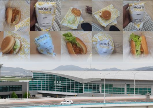 A씨가 공항에서 먹은 햄버거들(위, 이주민 인권을 위한 부울경 공동대책위원회 제공)과 김해공항 전경. |