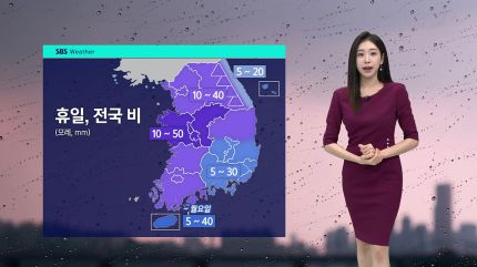 토요일인 내일은 제주와 호남 지역에 가끔 비가 내리겠고, 휴일 새벽에는 서쪽 지역부터 비가 시작돼 오전 중에는 전국으로 확대되겠습니다.