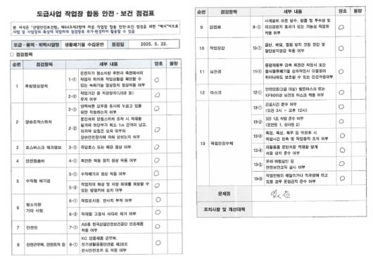 서울 강서구청 '도급사업 작업장 합동 안전·보건 점검표'. 서울 강서구의회 김민석 의원 제공 |