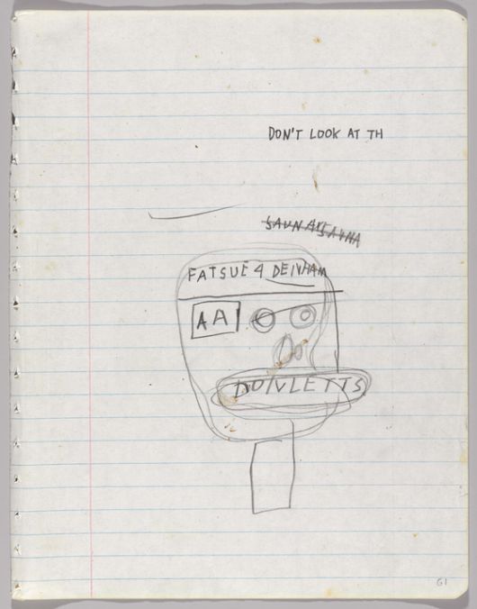 워시는 “그렇다고 이 노트북을 단순히 회화 작업을 하기 이전의 밑그림 정도로 생각할 수도 없다”고 했다. “바스키아에게 노트북은 거리나 스튜디오에서 하는 작업과는 전혀 다른 독특한 창작활동이었다. 노트북은 바스키아의 창작을 돕는 역할 뿐 아니라 그 자체로도 하나의 오브제 또는 작품으로서 가치가 있다.”