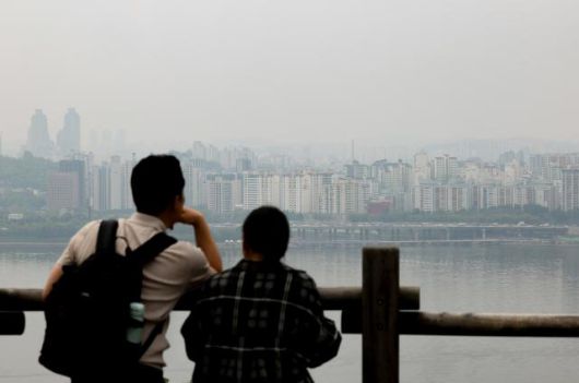 구름이 많아 흐린 날씨를 보인 5월 11일 서울 마포구 하늘공원에서 시민들이 한강변을 바라보고 있다. [사진=연합뉴스] |