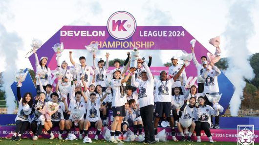 ▲ 2024 WK리그 챔피언결정전에서 우승한 수원FC 위민 선수단의 세리머니 모습