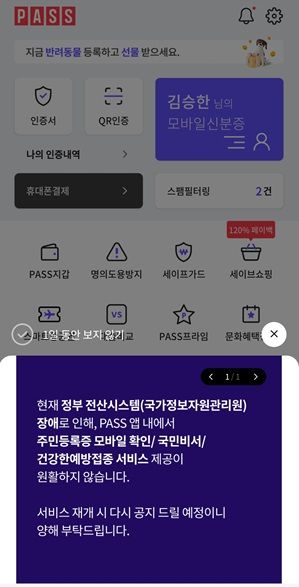 통신 업계 관계자는 "PASS 앱의 서비스 정상화 여부는 행정안전부 시스템 복구 시점에 따라 결정될 것으로 보인다"고 말했다.