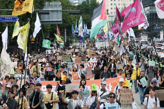 황인철 공동집행위원장은 “기후재난이 야기하는 생존의 위협과 불평등 심화를 방치한다면 모든 생명의 존엄성이 보장되는 민주공화국 실현은 불가능하다”며 “기후정의의 모든 걸림돌을 치워버리고 이제까지 없었던 새로운 길을 만들어가자”고 제안했다.