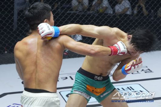 이정현이 편예준에게 펀치를 날리고 있다. 사진제공=로드FC |