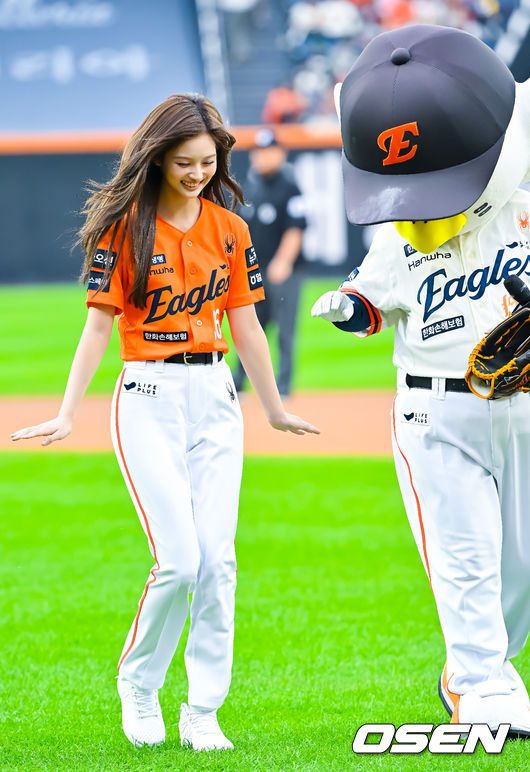 [OSEN=대전, 민경훈 기자] 27일 오후 대전 한화생명볼파크에서 2025 신한 SOL Bank KBO리그한화 이글스와LG 트윈스의 경기가 열렸다. 한화는문동주, LG는톨허스트를 선발 투수로 내세웠다. 걸그룹 엔믹스(NMIXX) 설윤이 시구를 마친 후 깡총깡총 뛰고 있다. 2025.09.27 /rumi@osen.co.kr