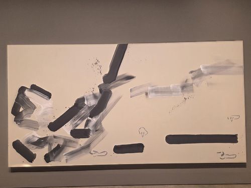 '허'는 흰 캔버스에 힘 있는 획과 오리 기호만 배치해, 여백 속 긴장감을 드러낸다. 제목이 없는 조각 작품은 벽돌 모양으로 주무른 흙을 아무렇게나 던져 쌓은 모양이다.