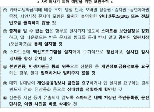 악성앱이 설치되면 개인정보 유출은 물론 원격조종을 통한 금융 피해가 발생할 수 있어, 앱 설치를 유도하는 요구에는 응하지 말아야 한다고 강조했다.