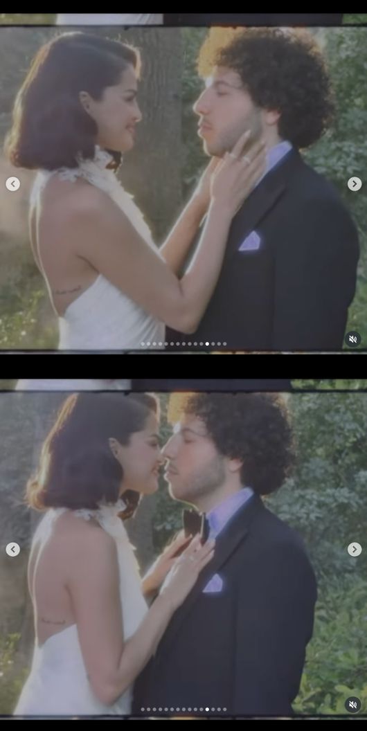 셀레나 고메즈는 이날 SNS에 사진 작가 페트라 콜린스가 찍은 결혼식 사진과 영상을 공유했다. 사진과 영상에서 이들 부부는 포옹하고 손을 잡으며 다정한 모습으로 결혼식을 즐기고 있었다.