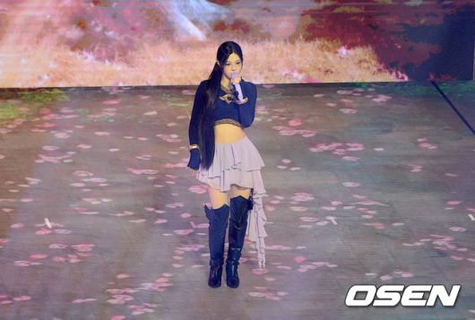 [OSEN=영종도, 고용준 기자] 28일 오후 인천광역시 영종도 인스파이어 아레나에서 ‘2025 LOL 챔피언스 코리아(이하 LCK)’ 결승전에 앞서 카타리나 장인으로 알려진 아이돌 그룹 ‘아일릿’ 민주가 아이오니아 테마의 주제곡 ‘히어, 투마로우(Here, Tomorrow)’를 열창하고 있다. / scrapper@osen.co.kr