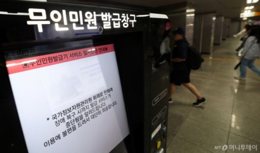 28일 오전 서울 종각역 무인민원발급기에 이용불가 안내문이 붙어 있다. /사진=뉴스1 /사진=(서울=뉴스1) 오대일 기자 |