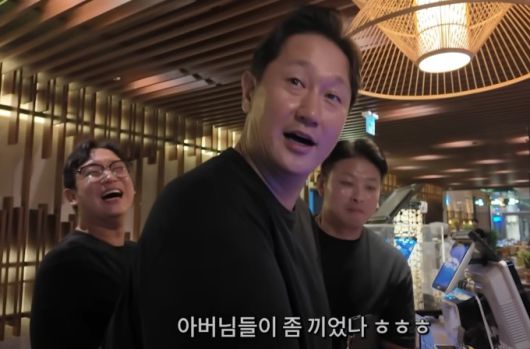 이대호가 대게식당 계산대에서 영수증을 확인하고 인원이 늘었다면서 "아버님들고 오셨나"라며 너스레를 떨고 있다. [사진=이대호 유튜브 캡처] |