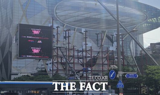 법무부가 한 달간 전국 전광판과 미디어보드 등을 통해 '딥페이크 성범죄 예방' 영상을 송출한다. 서울시청 전광판 송출 모습. /법무부 |