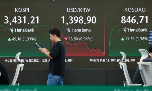 29일 서울 중구 하나은행 본점 딜링룸 현황판에 코스피, 원·달러 환율, 코스닥 지수가 표시돼 있다. (사진= 연합뉴스) |