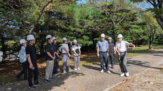 김남일 사장을 비롯한 경북문화관광공사 임직원들이 경관 개선 현장을 둘러보고 있다. 공사 제공 |