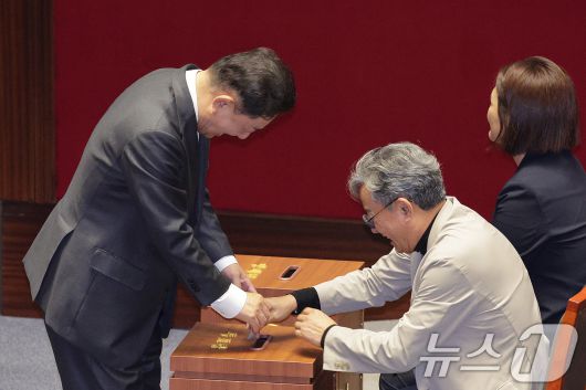 (서울=뉴스1) 신웅수 기자 = 김병기 더불어민주당 원내대표가 29일 서울 여의도 국회에서 열린 제429회 국회(정기회) 제9차 본회의에서 국회에서의 증언·감정 등에 관한 법률 일부개정법률안(대안)에 대한 무제한토론(필리버스터) 종결동의의 건을 투표하고 있다. 2025.9.29/뉴스1