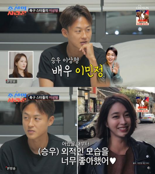 축구 선수 이승우가 배우 이민정을 이상형으로 꼽았다.
