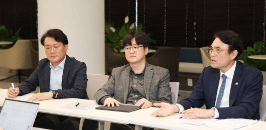 SPC, 포스코이앤씨 등 대기업에서 작업장 사망사고가 발생한 데 이어 최근 코레일이 관리하는 경북 청도군 경부선 선로에서도 근로자가 숨지는 등 민간과 공공을 가리지 않고 중대재해가 발생하고 있다. 정부는 연간 사망사고가 3명 이상 발생한 기업에 영업이익 5%를 과징금으로 부과하는 ‘노동안전 종합대책’을 내놨다. 동아일보와 고용노동부는 23일 산업재해 현황을 점검하고 정부 대책 실효성을 진단하는 긴급 좌담회를 열었다. 오른쪽부터 권창준 고용노동부 차관, 김기선 충남대 법학전문대학원 교수, 유성규 성공회대 겸임교수. 신원건 기자 laputa@donga.com |