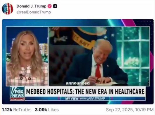 가짜 영상에서 트럼프 대통령은 “미국 공공 의료체계의 새 시대가 열린다”며 “모든 미국인에게 ‘메드베드(medbed)’ 카드를 지급해 최신식 기술과 최고의 의사를 갖춘 새 병원에서 의료 서비스를 받도록 하겠다”고 말했다. 이어 “누구나 그 어느 때보다 건강하고 활력 넘치는 삶을 살게 될 것”이라고 했다.