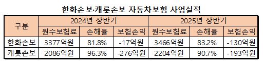 실제 한화손보와 캐롯손보는 현재 자동차보험에서 적자를 보고 있다. 올해 상반기 말 기준 양사는 각각 130억원, 193억원의 손실을 기록했다.