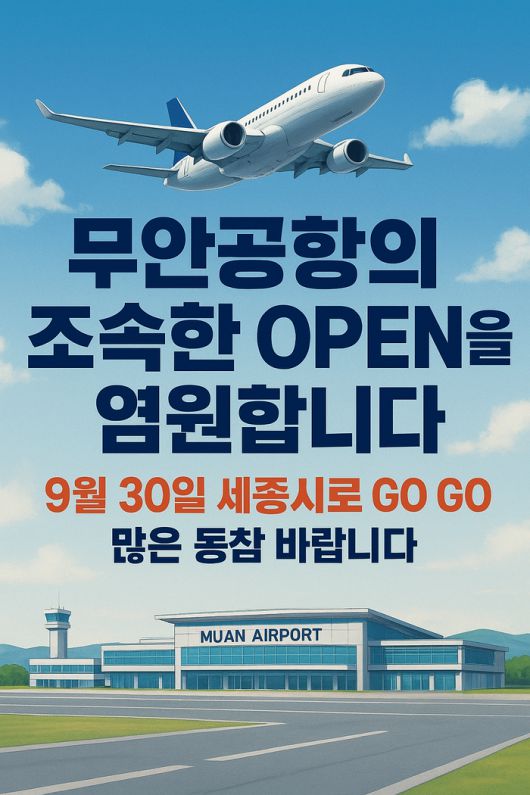 [스포츠서울 | 위수정 기자] ‘무안공항 개항촉구 추진위원회(위원장 김경수, 부위원장 윤기주·함수일)’는 오늘(30일) 오전 세종시 국토교통부 앞에서 무안공항의 조속한 재개항을 요구하는 촉구대회를 개최한다고 밝혔다.