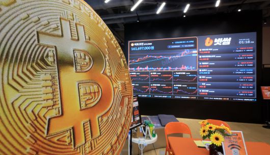 빗썸라운지 강남본점 전광판에 표시된 비트코인 거래 가격./뉴스1 |