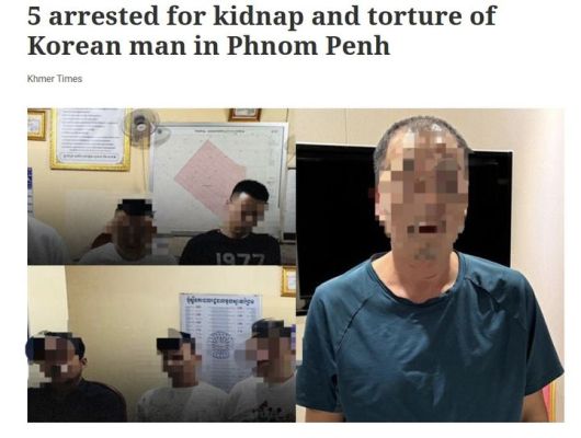 현지 매체 크메르타임스 보도에 따르면 프놈펜 경찰은 지난 22일 51세 한국인 남성 A씨를 감금·고문한 혐의로 용의자 5명을 붙잡았다고 밝혔다. 체포된 용의자는 30~40대 중국인 4명과 30대 캄보디아 남성 1명(운전사) 등 총 5명이다.