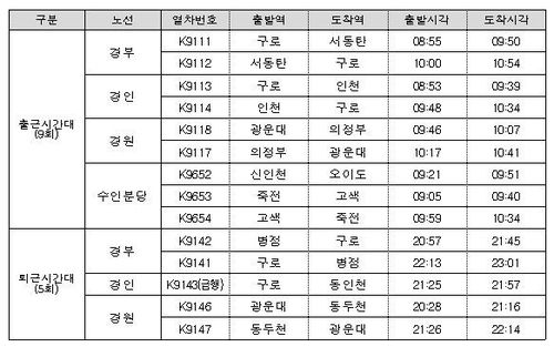 임시 전동열차는 경부·경인·경원·수인분당 등 4개 노선에서 출근 시간대 9회, 퇴근 시간대 5회 더 운행할 예정이다.