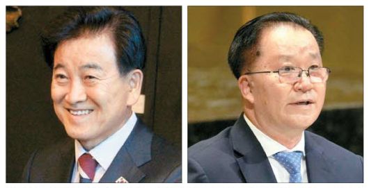 정동영 통일부 장관이 29일 독일 베를린에서 기자간담회를 하고 있다(왼쪽 사진). 오른쪽 사진은 같은 날 미국 뉴욕 유엔총회에서 연설하고 있는 김선경 북한 외무성 부상. AFP연합뉴스 |
